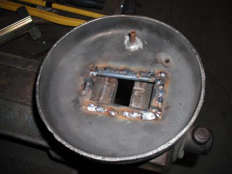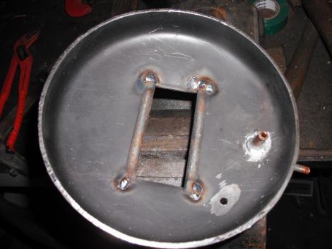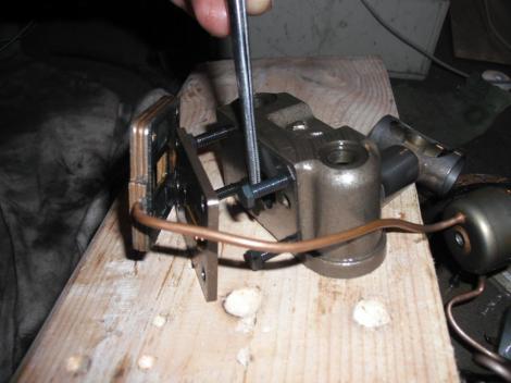 Én az első munkámat egy ilyan változaton vittem végbe. Ott elcsonkoltam a lefelé vezető csőcsonkot, hogy onnan levegő ne érkezhessen be az utolsó képen látható térbe. Helyette a tömb oldalát megfúrtam nagyjából ahol a piros csavarhúzót nekitámasztom, és abba egy szorosan illeszkedő rézcsövet ütöttem bele. Amit aztán felhasználva megoldható a kintről történő lég beszívás az ismert módon.