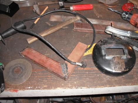 Kellene egy fogantyú is a szerkezetnek, és kell még egy üzemi ki-be kapcsoló. Ne kelljen már mindig a konnektor csatlakozót ki-be dugdosni. Ehhez nekem most némi maradék 60x40-es zártszelvény akad a kezembe. Valami nagyobb volumenű munkából maradhattak ezek a 10-20 centis darabok. A megfelelő 45 fokos szögvágások, és a kapcsolónak megfelelő hely kivágása után hamar összehozható egy kis kényelmi funkció.